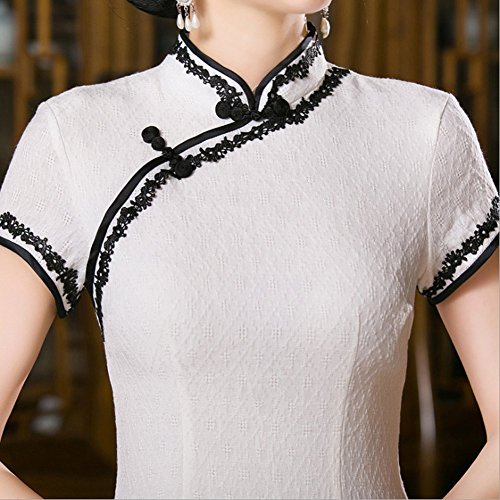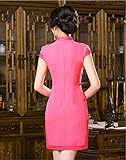 Material: 95% Polyester / 5% Spandex. Crew neck, short sleeves, slim fit, above knee, mini, elegant classic mini cheongsam dress design.Soft and breathable comfort, features fitted body line in proper thickness fabric and relaxed fit makes this dress perfect for casual or work wear
