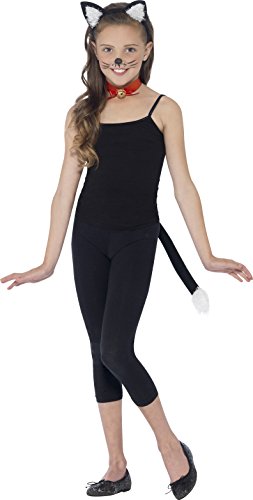 Children’s Cat Kit, Including: Ears, Collar and Tail, Black and white cat ears on headband with matching black tail, Red collar with bell completes the look