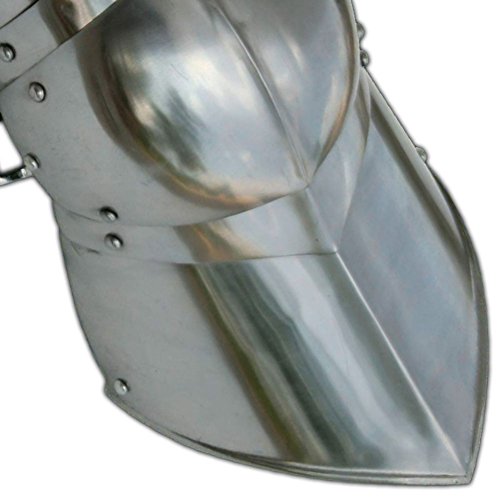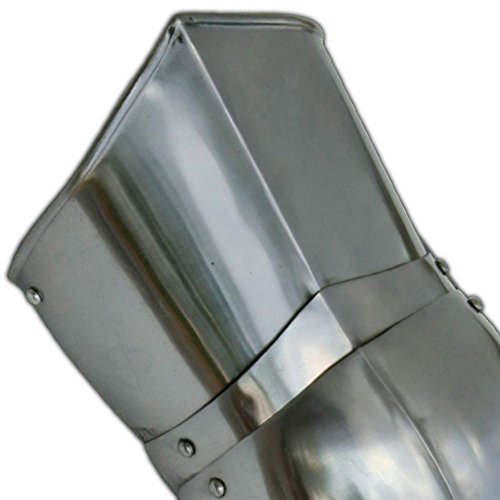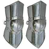 Preparing for a battle? This functional pair of greaves leg armor is made of thick 18 gauge steel, and can be used to protect the legs and knees. The forged center crease in the armor provides extra support to the armor. It is a smart design, crafted with durable materials. The contours of the Greaves function like a spring, deflecting a strike. Hinged rivets join the 5 sections together, providing overlap protection. Coverage spans from about mid-thigh, to mid-ankle. Perfectly combines with Medieval Jousting Knight Body Armor 7 Piece Set . Satin polish and light oil coat the exterior of the carbon steel armor. Black lacquer paint covers the inside of the armor. Three adjustable straps hold the armor in place. These straps are genuine cowhide leather, and thick. Use a belt hole punch, or the pre-configured holes to tune the strap to the right fit. It is approved for actual use, not just for show. Protecting your knees and legs is just as important as the rest of your body.