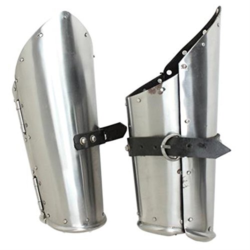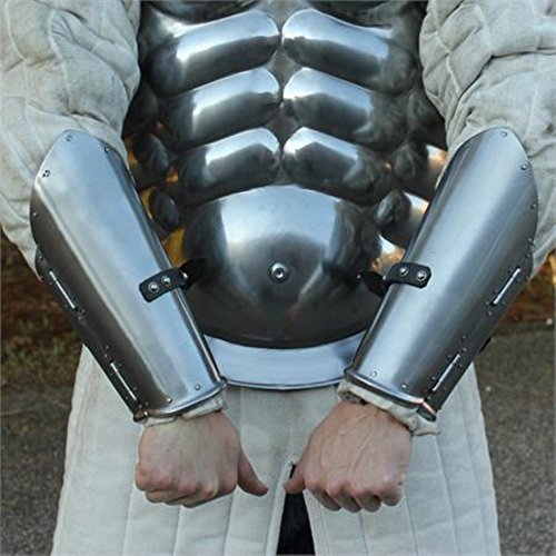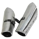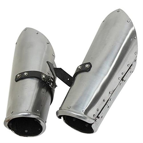 These authentically detailed pieces are crafted from 16 gauge steel and genuine leather. Braces protect the forearm and are part of a complete set of armor. These are the perfect items to complete your convention costume, LARP gear, or reenactment kit. Adjustable leather straps provide a secure fit. Each brace measures 10 3/4″ long and 6″ wide across the elbow. One size fits most.