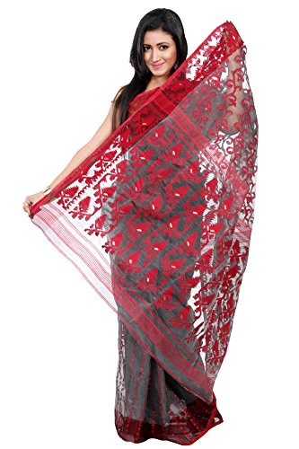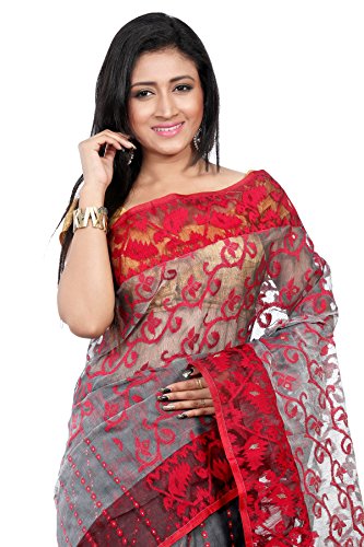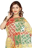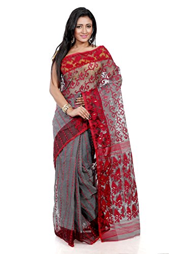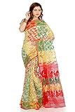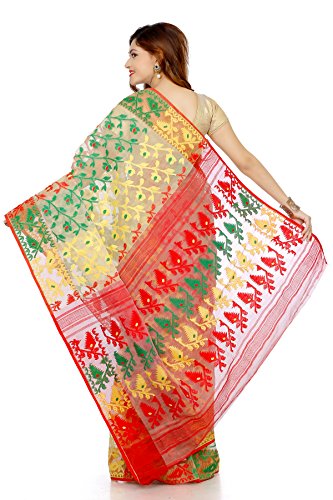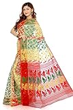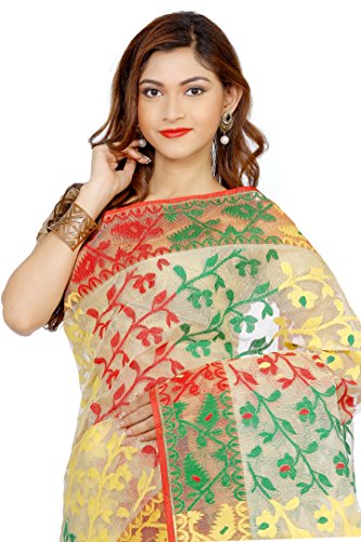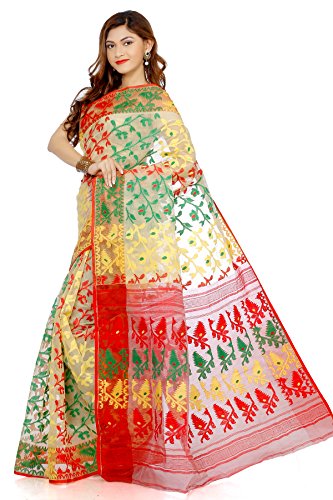 B3Fashion sublime Beige Dhakai Jamdani Cotton Silk saree weaved with floral motifs in pink , inexperienced and Yellow threads in every single place the saree with stunning pink shaded and weaved pallu and border