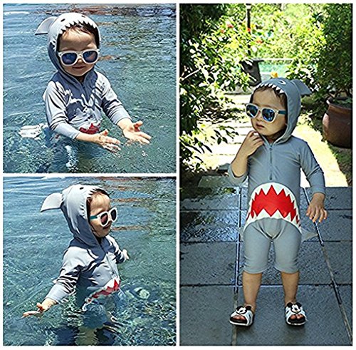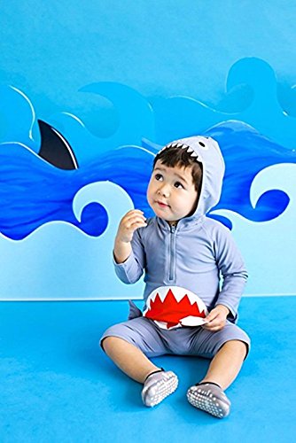Baby Boy Woman Cute Shark Print Rash Protect Long Sleeve Swimsuit UPF 50 Sun Protection