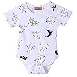 Features: Short sleeve, round collar rompers with paper crane pattern printing for newborn baby.