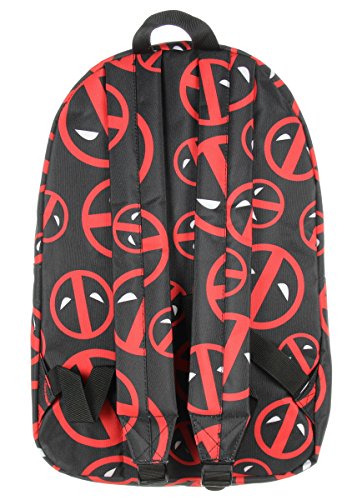 Deadpool is a disfigured and mentally unstable mercenary anti-hero who can laugh, joke, or freak out at any given time. He is the Merc with a Mouth who loves to talk and crack jokes. This officially licensed Marvel backpack features a Deadpool logo all over print. Includes one main zippered compartment, small front zippered pocket, padded back, and padded adjustable shoulder straps. Made of 100% Polyester.