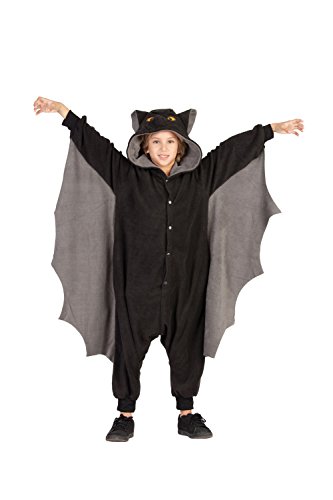 This Bat Child Onesie Comes with Polar Fleece, Black Jumpsuit With Gray Wings & Hood, 2 Pockets, Snap Closure Size 49 ” X 19″