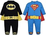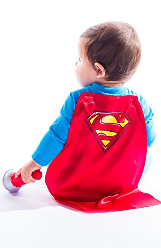 Outfit your caped hero in Batman or Superman with these adorable hero costume 2 pack coveralls. He can soar as Superman in blue and red or save the day in bold black and yellow as Gotham’s Caped Crusader Batman.