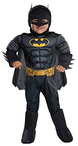 Our child Deluxe Muscle Chest Batman comes in sizes Toddler, Medium, Small, Large.