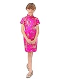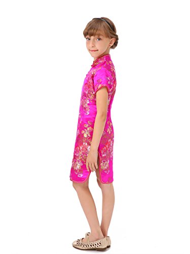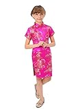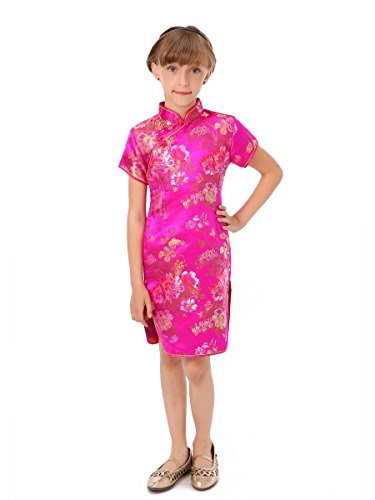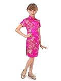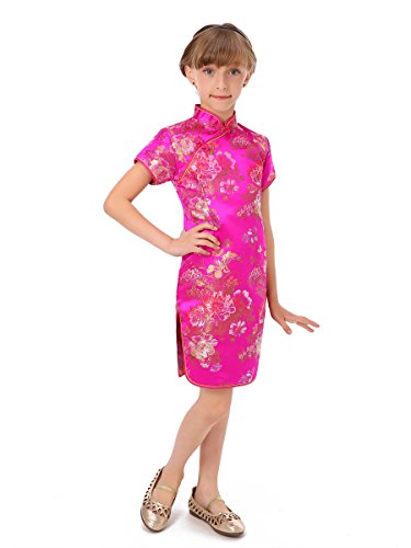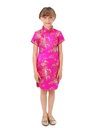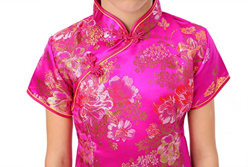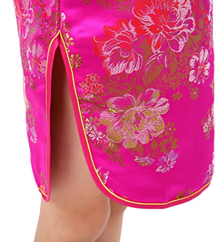 Well-made Chinese dress made of fine Chinese brocade fabric with colorful peony patterns, exquisitely decorated by double-pipings and Chinese frog buttons… a special present for your angel… Please be aware of the fact that the flower pattern may not appear in the same position as shown in the product picture.