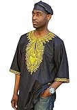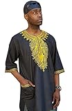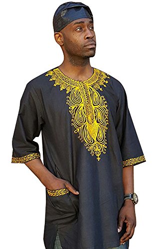 Black plain soft cotton Dashiki with Gold Embroidery, Black and gold Traditional African Dashiki Shirt, casual wear, comfortable, length is approximately between 32 – 35″ depending on size