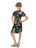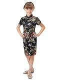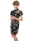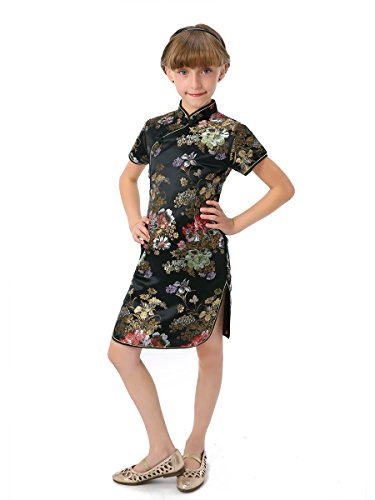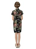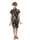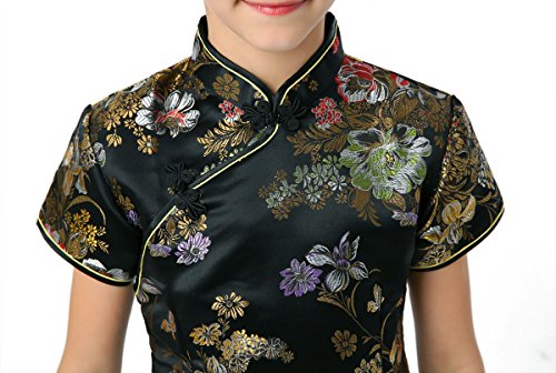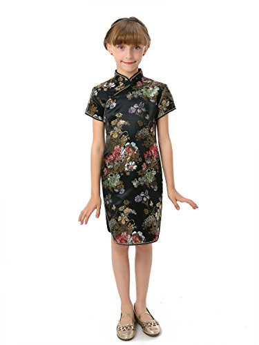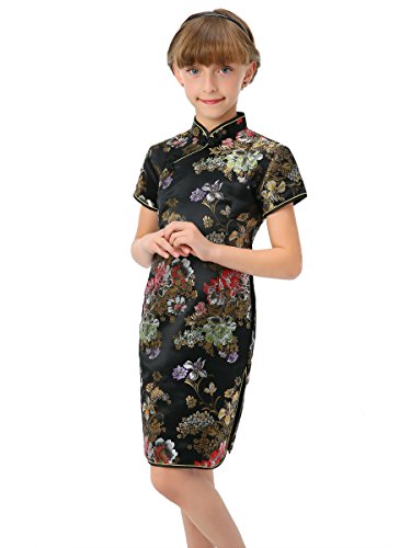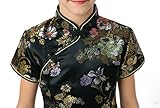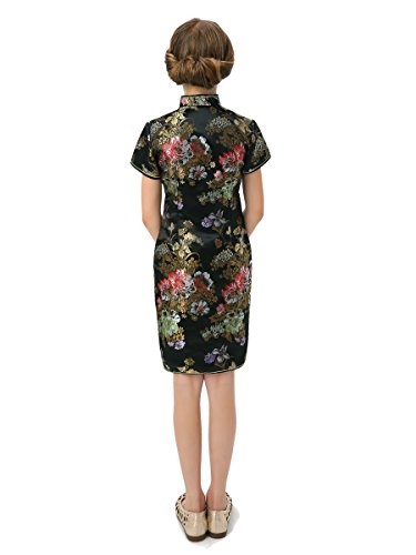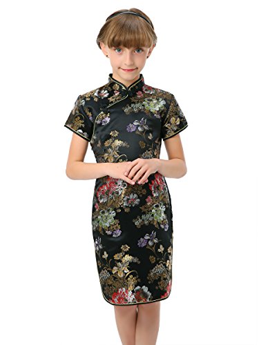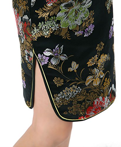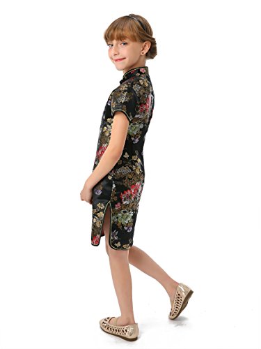 Well-made Chinese brocade qipao dress with dazzling peony patterns on the black background…