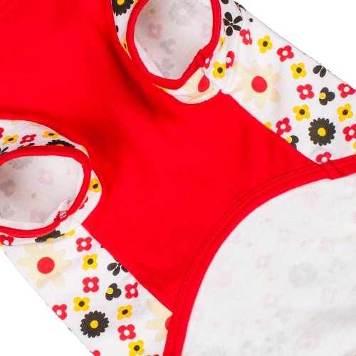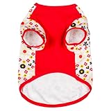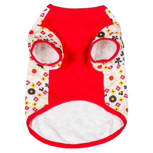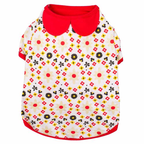 Unleash your precious pooch from all worries and let her relax in this beautifully-designer Peter Pan collar T-Shirt! With the red trims on the neckline, hem and short sleeve cuffs, this soft cotton T-Shirt will be one of her favorite wardrobe essentials. Those little garden flowers are nicely scattered on the T-Shirt, which creates eye catching patterns. This little T-Shirt will keep your pooch exactly where she belongs – in the spotlight no matter she is at home, on the beach or playing at the park. Our Tshirt design is great for small to medium dogs.