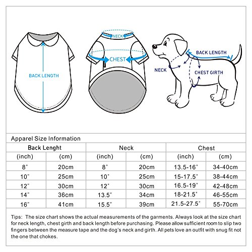 Pack of 3; Back Length 8″, Chest girth 13.5″- 16″, Neck 8″; Measure your dog from the base of the neck to the base of the tail for back length.