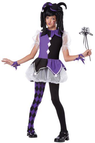 Our girl jester costume comes in child sizes X-Small, Medium, Small.
