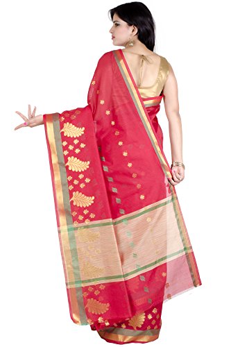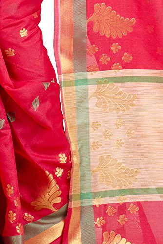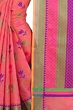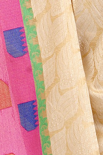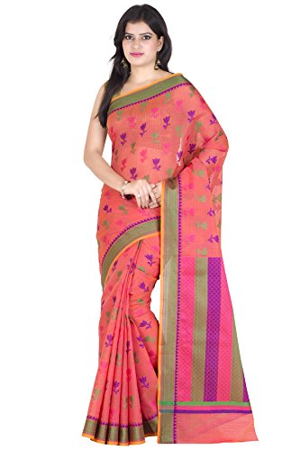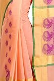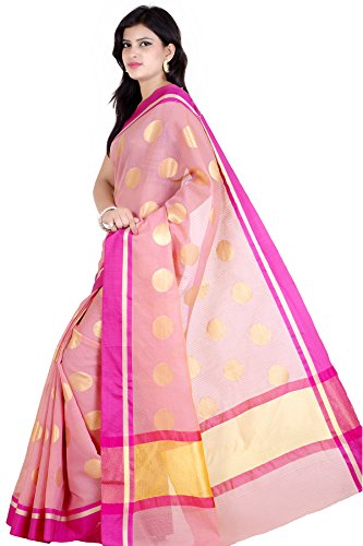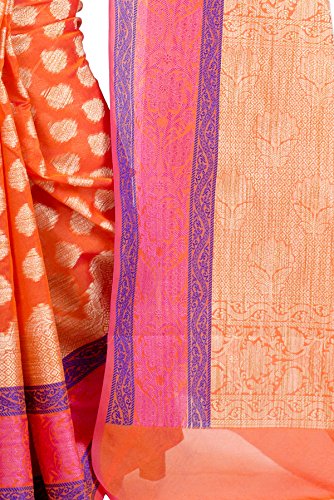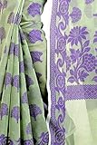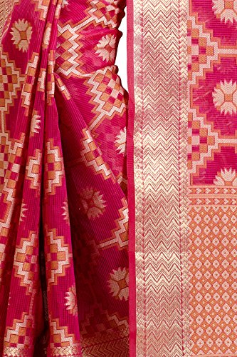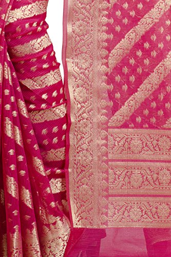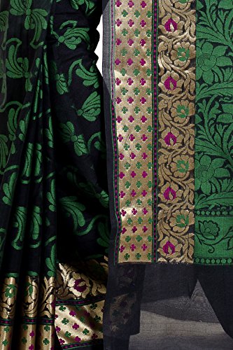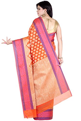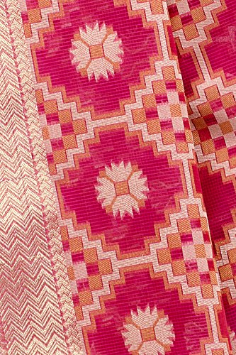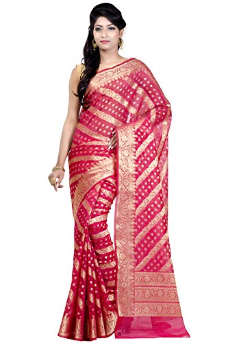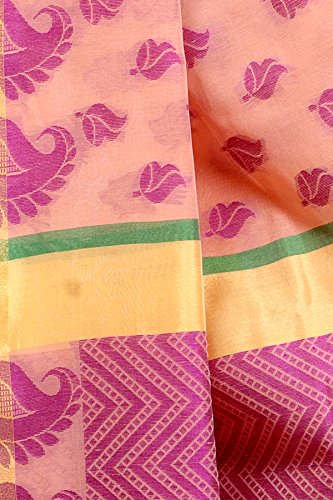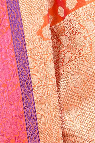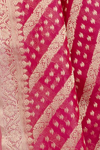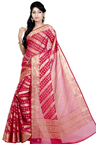 This Traditional Banarasi saree, has woven design all the way through and a zari woven border.