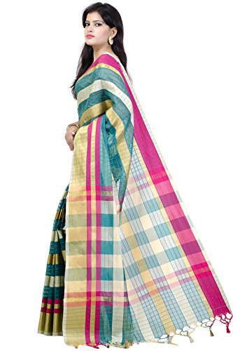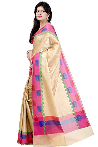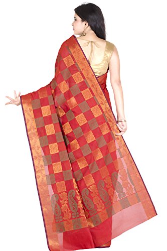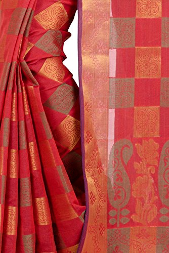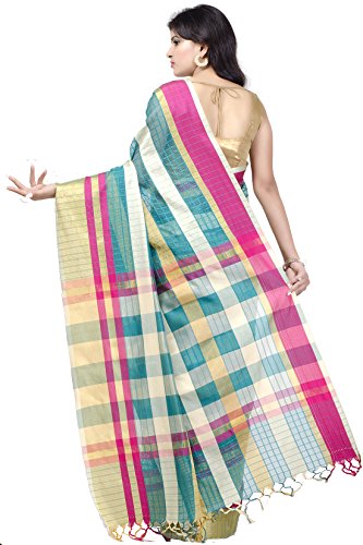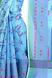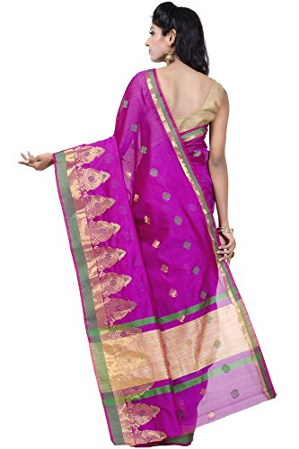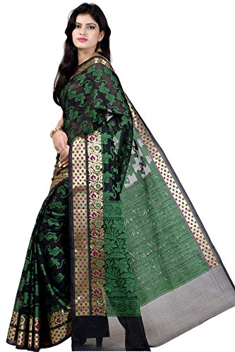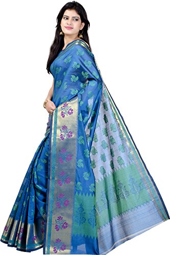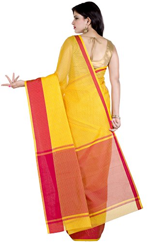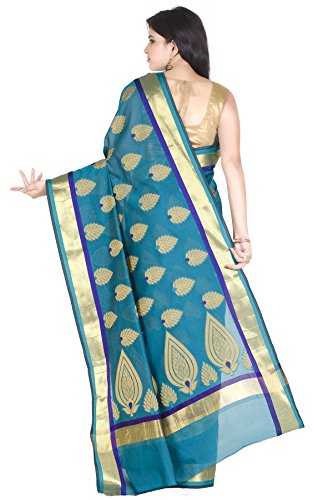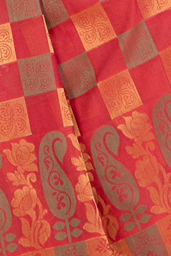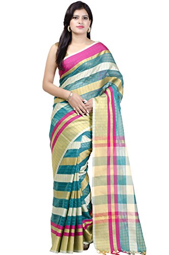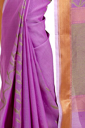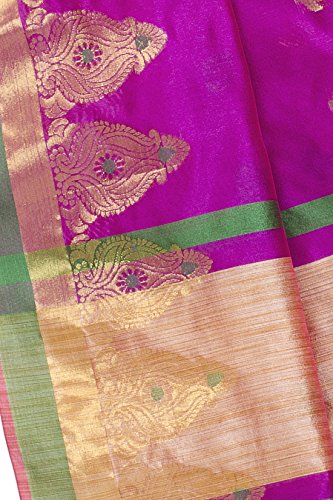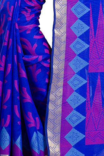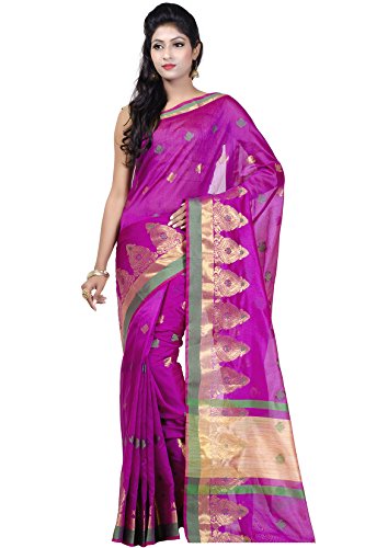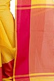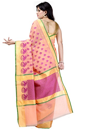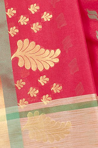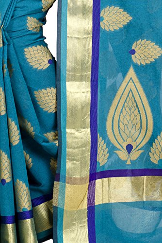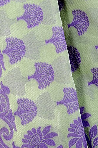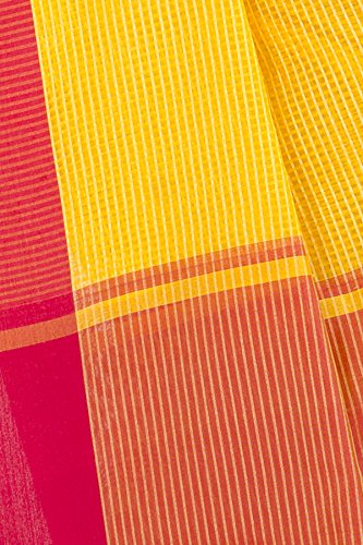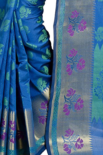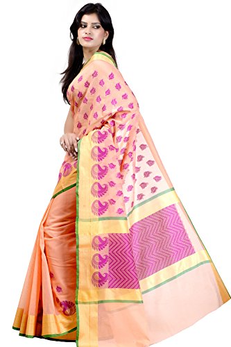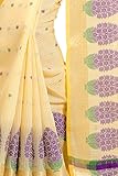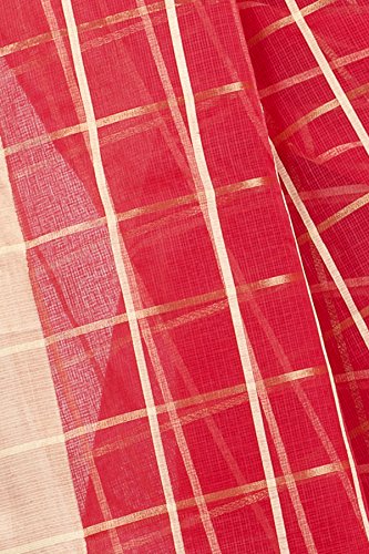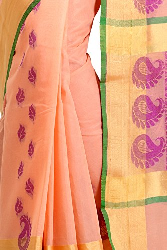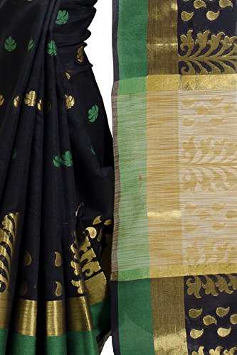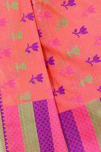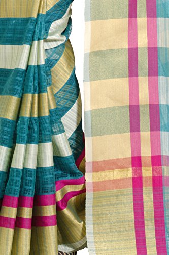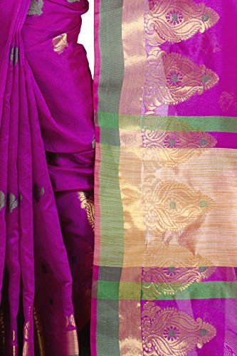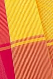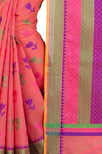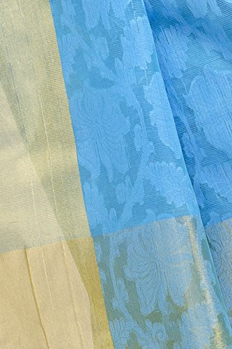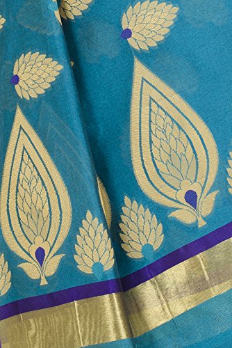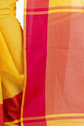 This saree uses a Art Silk warp and Mercerised Cotton weft.