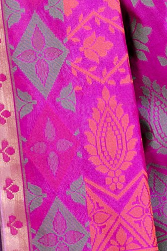 Look stunning on this designer Banarasi saree with beautiful blouse piece. The thread and zari weaving at the border complements other a part of saree creating the easiest festive wear