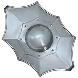 Fighting with sword and buckler is one of the oldest medieval styles of armed combat. A buckler (French bouclier ‘shield’, from Old French bocle, boucle ‘boss’) is a small shield, 15 to 45 cm (6 in to 18 in) in diameter, held by one hand and gripped in the center. The buckler was more widely used than is commonly known. It was simple yet effective and generally used as a companion with a single handed weapon (short sword, messer, falchion, or rapier) in hand-to-hand combat during the Medieval and Renaissance periods. It was popular circa 1100 to 1600. The buckler had a variety of roles when used during swordplay. There were five primary uses which recognized the bucklers small size and maneuverability: Hand protection, Deflector, Blinder, “Metal fist”, Binder. Its small size made it poor protection against missile or large weapons (e.g., arrows, axes, great swords, pole weapons) but useful in deflecting the blow of swords or large fighting knives (e.g., messer, dussak). There are two major forms of medieval bucklers documented. The first is a simple round or oval shield with the grip positioned directly behind the boss with a variety of shapes of face and depths of rim. These could also have projections from the top and bottom as illustrated in the fight books of medieval German fight master Hans Talhoffer. The second major form is a corrugated rectangle as seen in fight books from the renaissance. Hans Talhoffer was a 15th-century German fencing master connected to the tradition of Johannes Liechtenauer, the grand master of the Medieval German school of fencing. He authored at least five fencing manuals during the course of his career. His writings cover a wide assortment of weapons, including the arming sword and buckler which we have recreated and offer here. The Blackened Talhofer Grand Master Buckler Shield is constructed of 16 gauge forged mild steel with a black finish. This is a perfect addition to any armor collection.