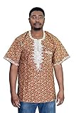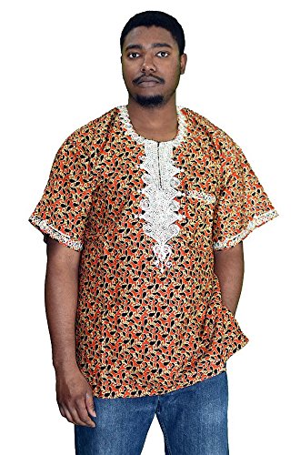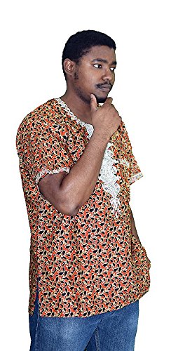 Traditional Motif Dashiki. This shirt has intricate chain stitch embroidery around the collar, the front and detailing along the edges and pocket. There is one pocket on the front breast. Model is wearing a size large. Extra Small: Chest 36″ Length 26″ Small: Chest 40″ Length 27″ Medium: Chest 44″ Length 30″ Large: Chest 50″ Length 32″ XL: Chest 55″ Length 34″ 2XL: Chest 60″ Length 36″ 3XL: Chest 64″ Length 39″ Made in Nigeria. Machine washable.