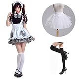 ❤ Complete cute uniform package includes dress, attached apron, headpiece, petticoat, white high socks and black high socks for women, girls.