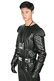 We up to date the breastplate and neck region a part of the costume,the breastplate is made from pvc,more durable. The neck region is made from pu leather,stylish and at ease