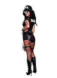This dea agent doesn’t mean to stare, but she wants to know what you’re hiding in your underwear. You will command the attention you deserve dressed in this sleek shiny black romper with buckle front details, attached garters, belt, leg garters, police/radio speaker and dea hat.