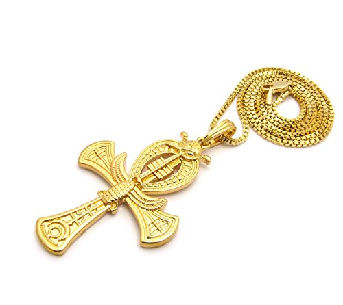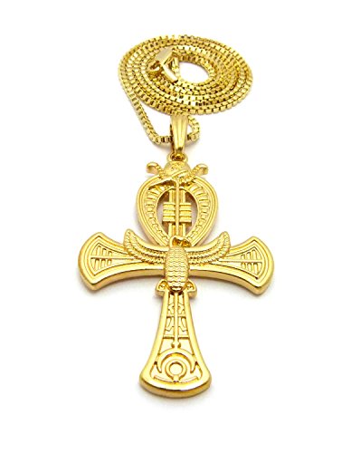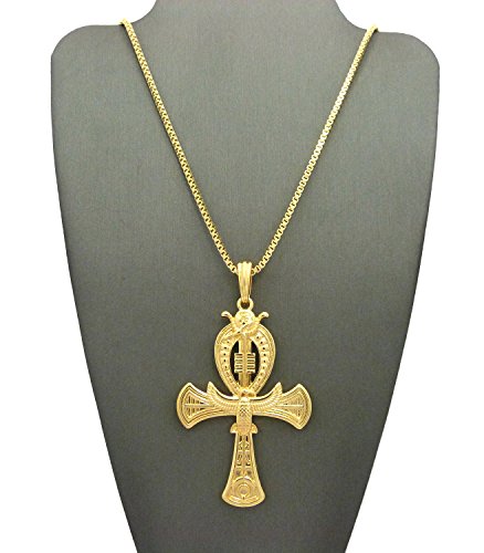 Egyptian Key of Life Ankh Pendant 24″ Various Chain Necklace in Gold, Silver Tone