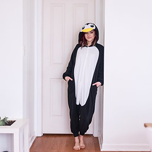 SIZINGSize Small is good for height 4’10 to 5’3. Size Medium is good for 5’3 to 5’6. Size Large is good for 5’6 to 5’9. Size XL is good for 5’10 to 6’2.ARE YOU READY TO HAVE FUN WITH A PLUSH, SOFT AND COMFORTABLE PENGUIN ONESIE BY EMOLLY FASHION?The Emolly Fashion Money Back GuaranteeAt Emolly we only want satisfied happy customers. We strive to use the highest quality materials in all of our onesies. That’s why if you’re not completely satisfied for any reason, at any time, simple contact us to request a refund or exchange to one of our other animal onesies.Warm and CozyOur onesies are made of polar fleece material that makes them breathable and comfortable to wear.You won’t be itching or waiting for the moment you can finally take the onesie off. You will be warm, comfortable and cozy and can wear the onesie as pajamas or as a costume.The Best Penguin Onesie by Emolly FashionBuy with confidence in our money back guarantee and enjoy the benefits of lounging around in the most adorable fun onesie yet!