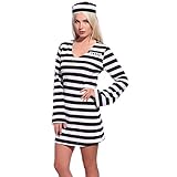 The criminal dress is completed by a matching black and white striped hat. Ready for a party tonight!
