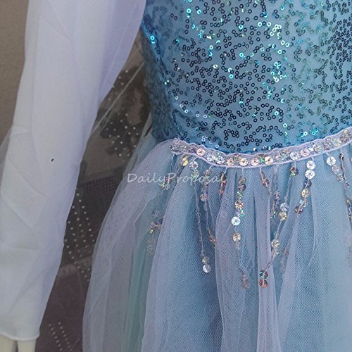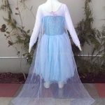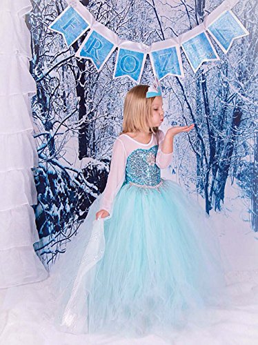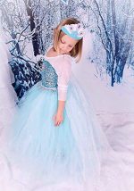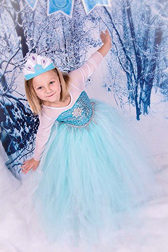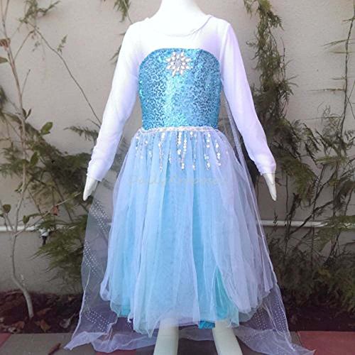 Beautiful Elsa costume inspired by Disney Frozen. This dress is designed with long sheer sleeves and shoulder coverage has the same magical ethereal look as Elsa. Long below knee tutu dress.