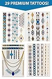 ✔︎ LONGER LASTING SHINE (WATERPROOF) – Don’t settle for tattoo jewelry that fades!! Get 4 sheets of sexy temporary tattoos. 29 vibrant gold, silver and turquoise metallic tattoos that last 4+ days. Women love Malibu Blue tattoos because they shine brighter no matter whether you’re dancing all night, or swimming all day.