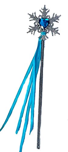 Sturdy snowflake wand in silver with blue gem and dangling ribbons