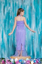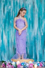 Just look at this little lady! She’s so cute in her Mermaid’s outfit. This light-lillac sundress is so nice that you can’t shift glance from your little girl. A frilly top fits perfectly, but doesn’t squeeze the body. The skirt of the dress looks and feels airy due to layered gauzy flounces. But the dress wouldn’t be perfect if it weren’t so convenient to put on. You just need to tie it at neck – and that’s all. And of course, Little Mermaid’s look wouldn’t be complete without the nice head ornament of matching colour. A tiny tiara is included in the set. You just have to find a nice pair of shoes and maybe add some accessories. Your little daughter will feel comfortable while playing or dancing, because the outfit is made of a very soft and smooth fabric. For proper care wash the gown by hand in cold water and iron at low temperature.