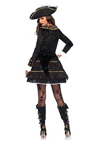 High seas pirate captain gold trimmed velvet coat dress with brocade bodice and button accents, lurex lace tiered skirt