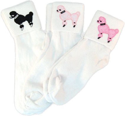 BOBBY SOCKS – Our bobby socks feature a poodle appliqué. They are made to fit a child with a shoe size 4-10.