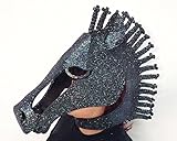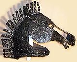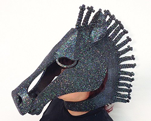 The metallic black glitter makes your horse a real eye-catcher, even in low lighting conditions. The head structure is open, so you can see all around you, and unlike many other masks, it won’t muffle your voice. You can see talk and take a drink without removing the horse mask. Do you wear glasses? No problem, they fit comfortably inside. There’s a built-in chinstrap, so as a dancer or performer, you can hoof it across the stage, or pirouette to your heart’s content, and your horse will stay firmly in place. When not in use your horse will look great displayed on your wall or table. Each one of these cleverly designed horse masks is handmade by us. The perfect horse costume: you’re a free spirit, intelligent and elegant. What more do you need?!
