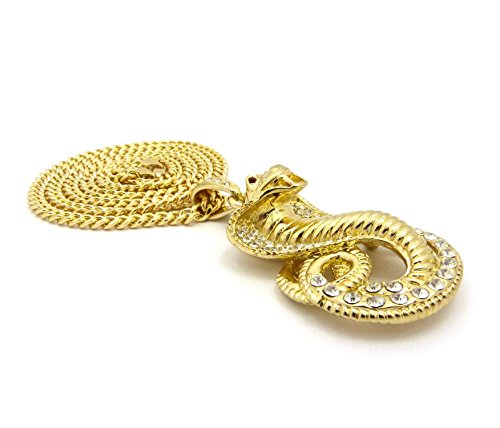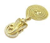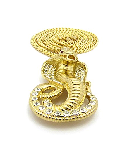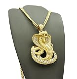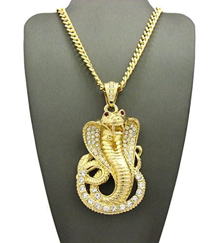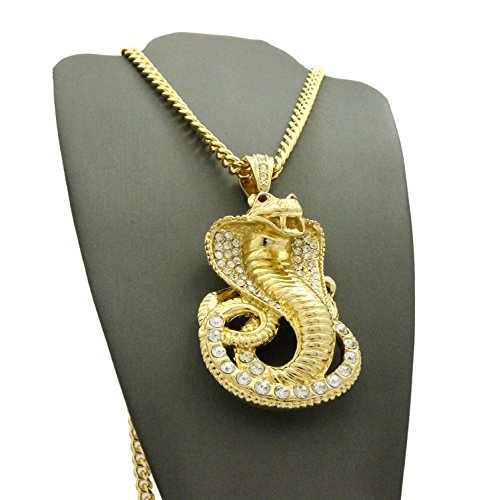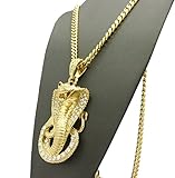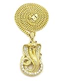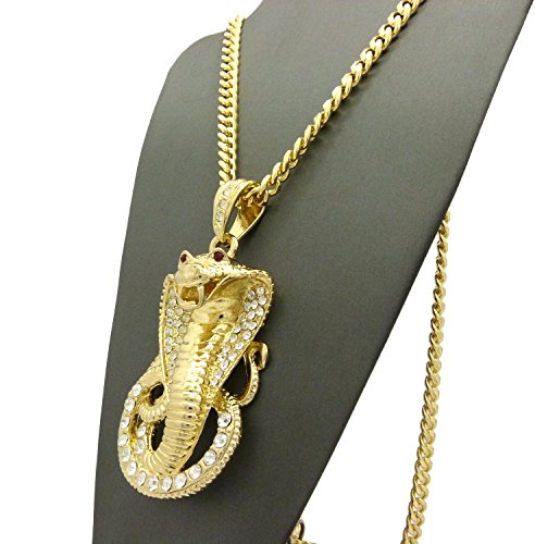 Iced Out Red Eye Cobra Pendant 6mm 36″ Cuban Chain Necklace in Gold, Silver Tone Plated