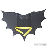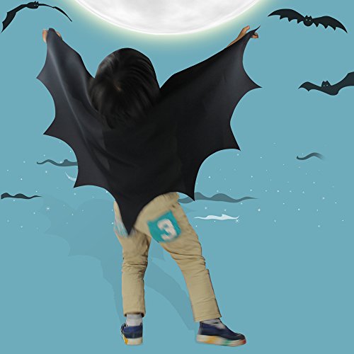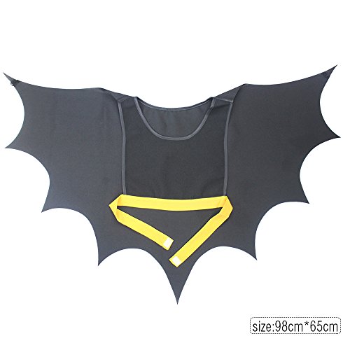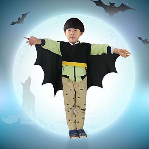Pretend play helps kids boost their imagination and creativity. What child doesn’t like to play dress-up? This cape is perfect for make believe fun,Halloween or parties. This cape is a bat cape. When arms are out straight you can see the bat wings. There is elastic in the wrists to keep the wings attached to the child’s arms.