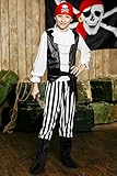 You may complete the fancy outfit with an eye-patch, pirate pistols, swords or a hook, a fake beard.