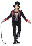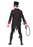 3 piece sinister ring grasp, comprises jacket with tattered tails, Blouse and vest combination with bow tie accessory, and matching best hat.