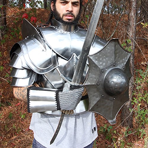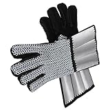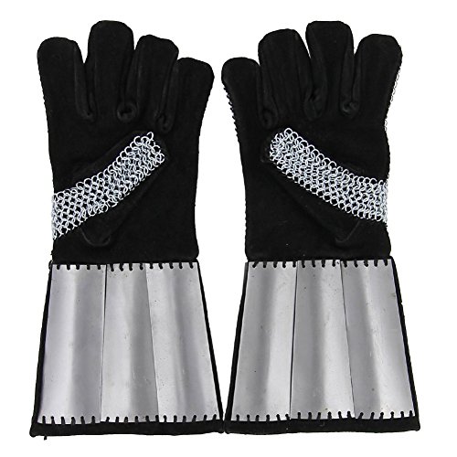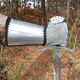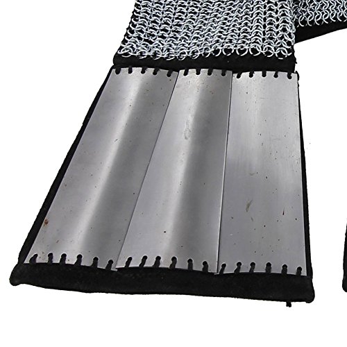 Mail is a type of armor consisting of small metal rings linked together in a pattern to form a mesh. It protects various parts of the body from injury. It has been used as far back as 4th century BC to protect soldiers in battle. This set of gauntlets are constructed from a combination of mail, suede, and steel plates. Because of its vertical and horizontal weave, it makes this prized possession flexible to bend but yet sturdy enough not to break. The plates add added protection to the user’s wrists and the suede makes the gauntlet comfortable to wear. These are great for tournaments, re-enactments, or costume accessories. Mail continues to still be used today as a component of stab-resistant body armor, cut-resistant gloves for butchers and woodworkers, shark-resistant wetsuits for defense against shark bites, and a number of other applications.