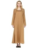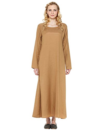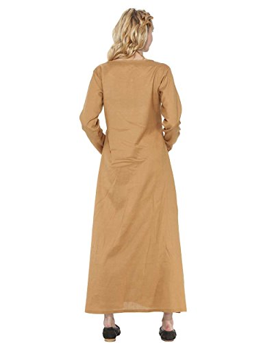 M’ladies, this linen, ankle-length underdress is a must-have. It’s a perfect smoothing base layer for medieval gowns. It can also be worn as a simple overdress, or sleep dress. It’s a versatile piece. You’ll enjoy its comfortable, flattering fit. And its natural, camel brown color.