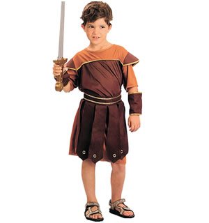Roman soldier (m). Pack contents : tunic with belt, cuffs, headpiece. Male – kids – medium colour : brown.