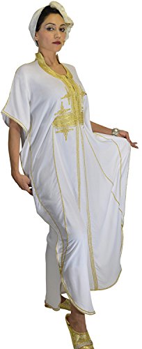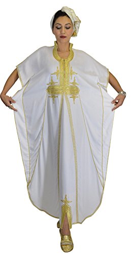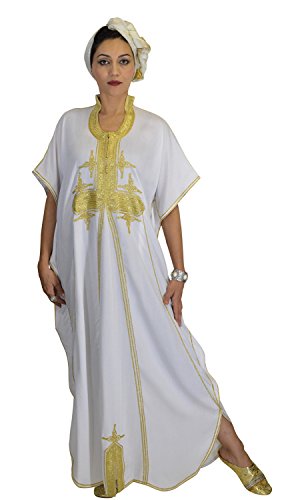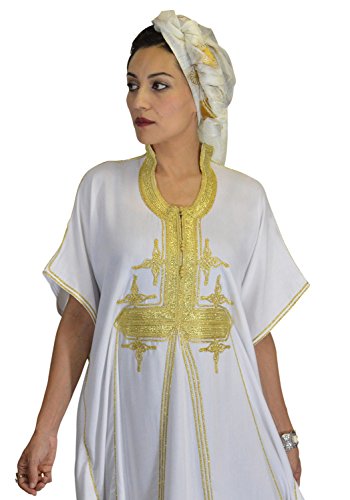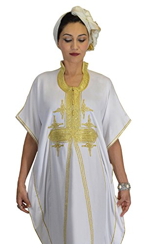 Stylish and comfortable, our Moroccan kaftans are pleasing to the eye as well to the touch. This caftan is handmade in Morocco from Mixed cotton with delicate embroideries around the edges and the chest. It gives you a Moroccan charm with a whole lot of elegance.