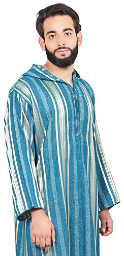 Slip into graceful, pure comfort in this djellaba, it is hand made by Moroccan artisan that uses a woven tread in the chest, the sleeves and the edges. The Hood will Gives you a Moroccan charm with a whole lot of elegance.