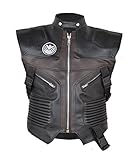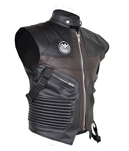 This beautiful light weight faux leather vest made in black color and with brown colour art work. It looks more like an attire but it can be worn casually. Best to keep you stylish and durable at the same time. The stitching are done neatly through in order to provide you a long lasting MSHCic wear. Hollywood famous hero Jeremy Renner also like this Coat in his upcoming movie Avengers Age of Ultron. You can ask to make same vest in real leathers like sheep or cow as well with additional charges.