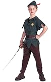 Peter Pan Costume includes: dark green tunic with Velcro closure in the back and attached brown belt, matching dark green hat with real red feather, and dark brown pants. Costume is available in Toddler size (3T-4T), Small size (4-6) for 3 to 4 years old, and Medium size (7-8) for 5 to 7 years old. Please note that sword toy is not included.Made of 100% polyester (exclusive of trim). Care instructions machine wash with cold water, tumble dry low, cool iron as needed, do not bleach.