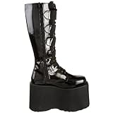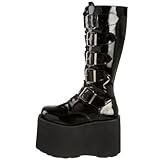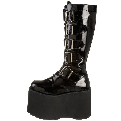 Heel Height: Approx. 5 3/4” Tall. Hip platform boots featuring a high platform, laces, adjustable straps and a side zipper.