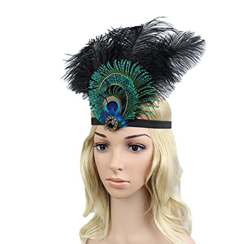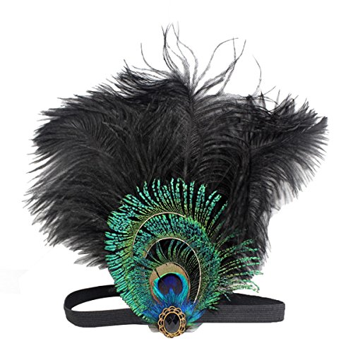 Black feathers headpiece flapper vintage 1920s Great Gatsby headband and headdresses