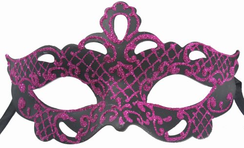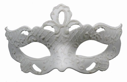 This painted masquerade mask is made from hard plastic and is accented with sparkling designs. The mask is about 3″ tall and 6″ wide. This mask will make a great accessory to any costume.
