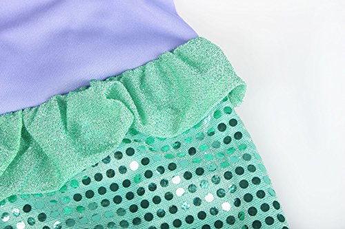 The legend of mermaid is always the best bedtime stories for girls. It’s a dream for every girl to become the mysterious and beautiful mermaid to get rid of arrangement and to look for true love. Now it’s time to let your little girl’ dream come true and give her a chance to enter the Fairy Tale world. With its shining sequin skirt and contrast bodice, this dress costume will no doubt be your girls’ new favorite and all eyes would be on her when she in this dress. It is the perfect combination of elegance, beauty and loveliness. It’s suitable for nearly all occasions. Shell:terylene, lining:polyester. Dry clean or hand wash. Imported.